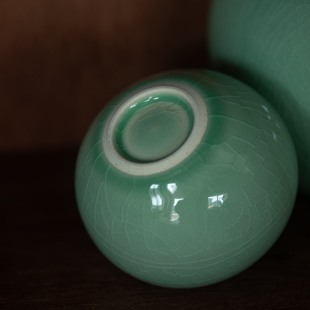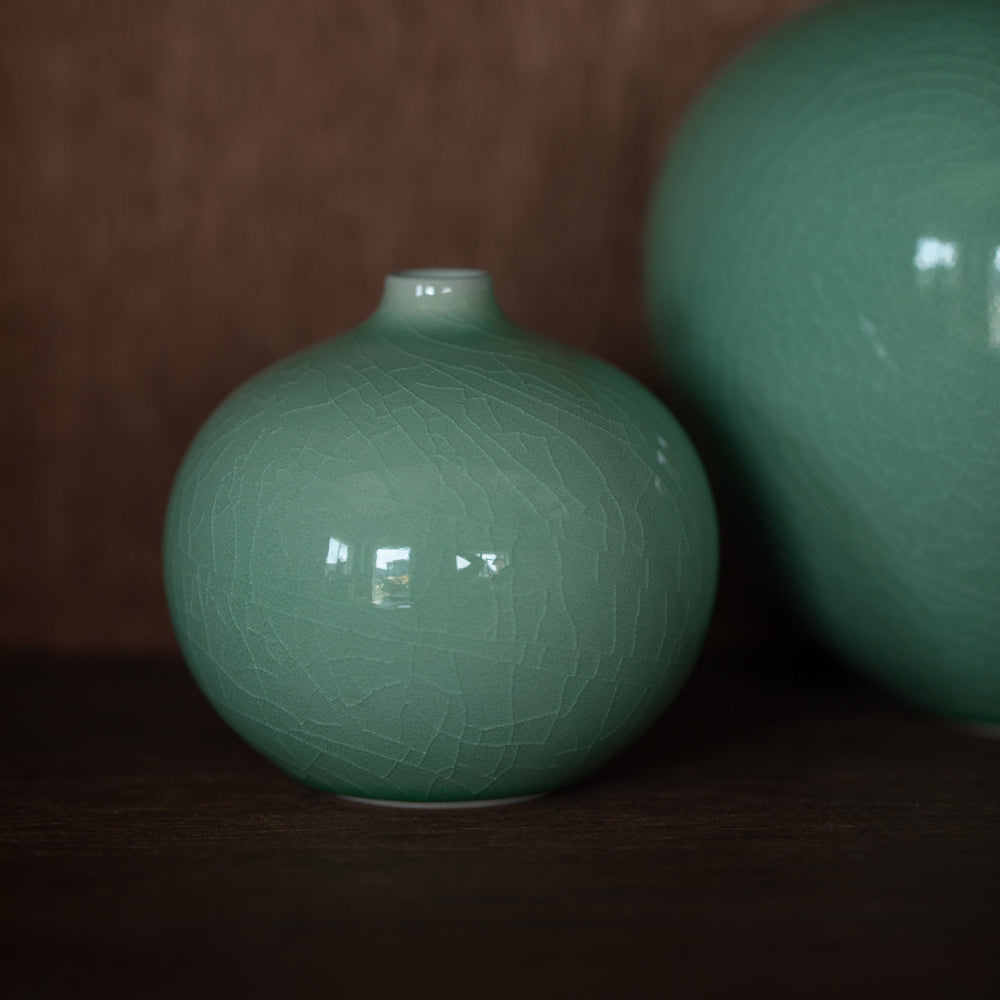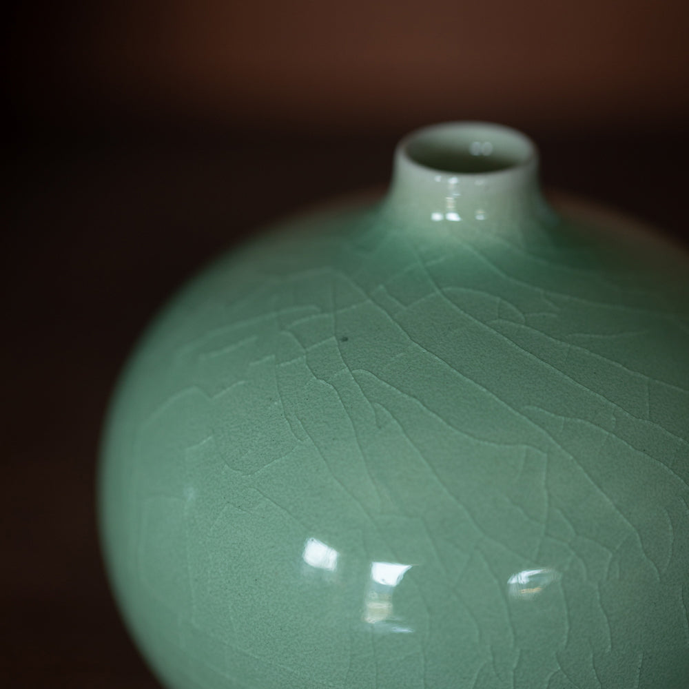 This Chungja vase, known as celadon ceramics, are individually hand-made by Jinho Choi. Unlike the regular Chungja with jade green shade, this Light-Chungja has light blue shade.