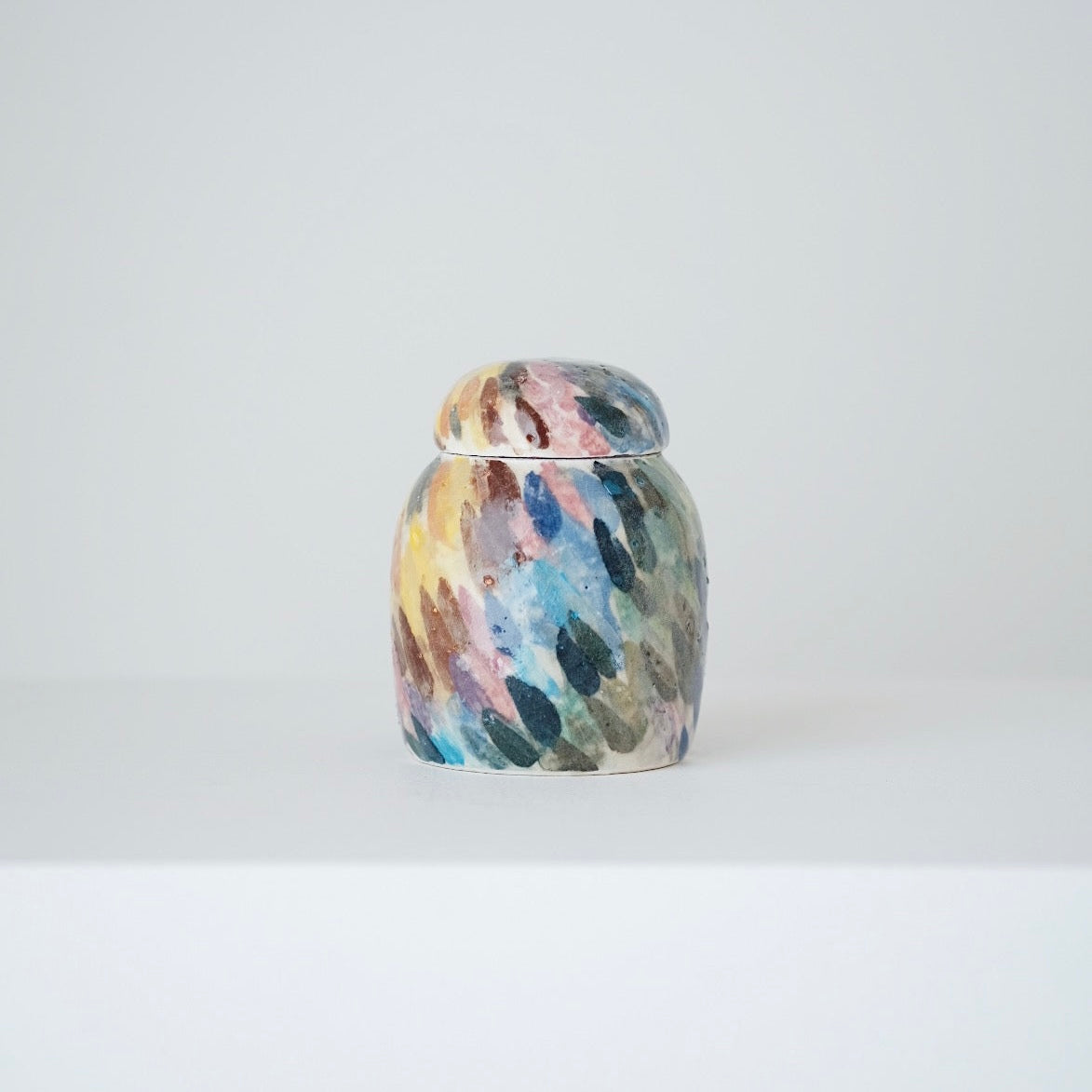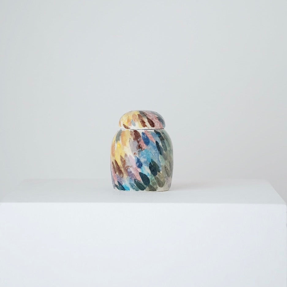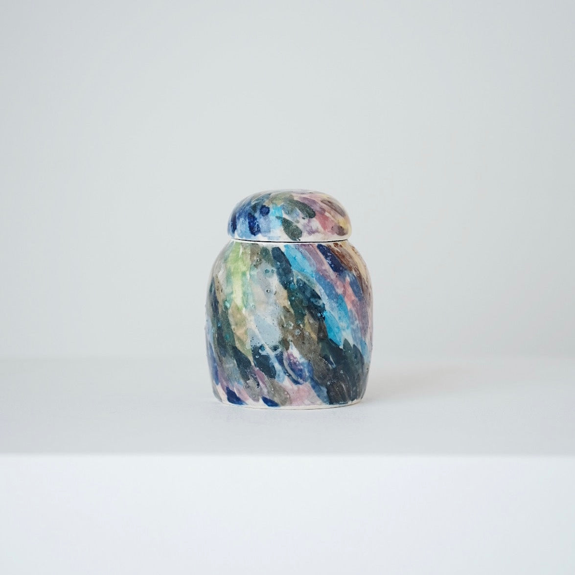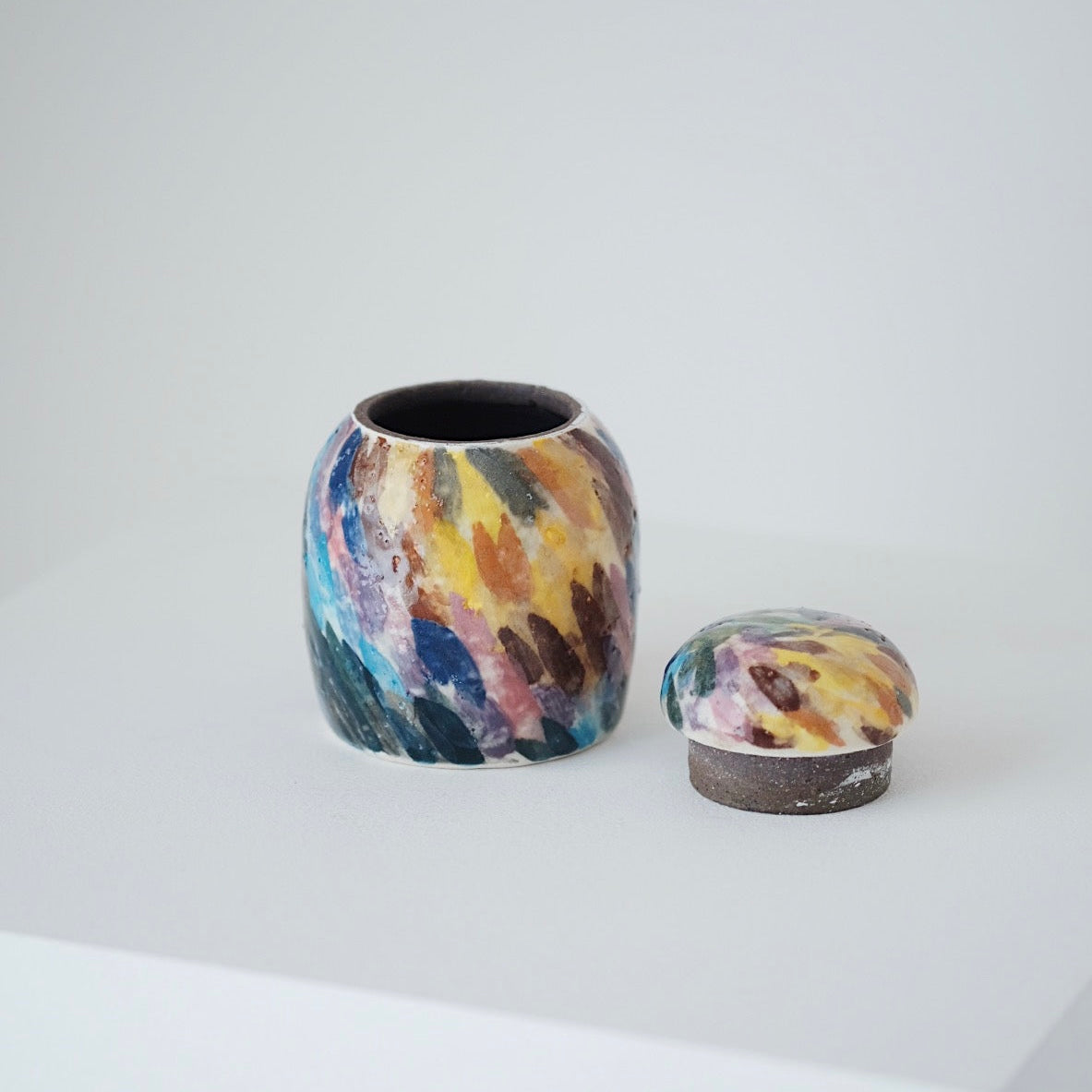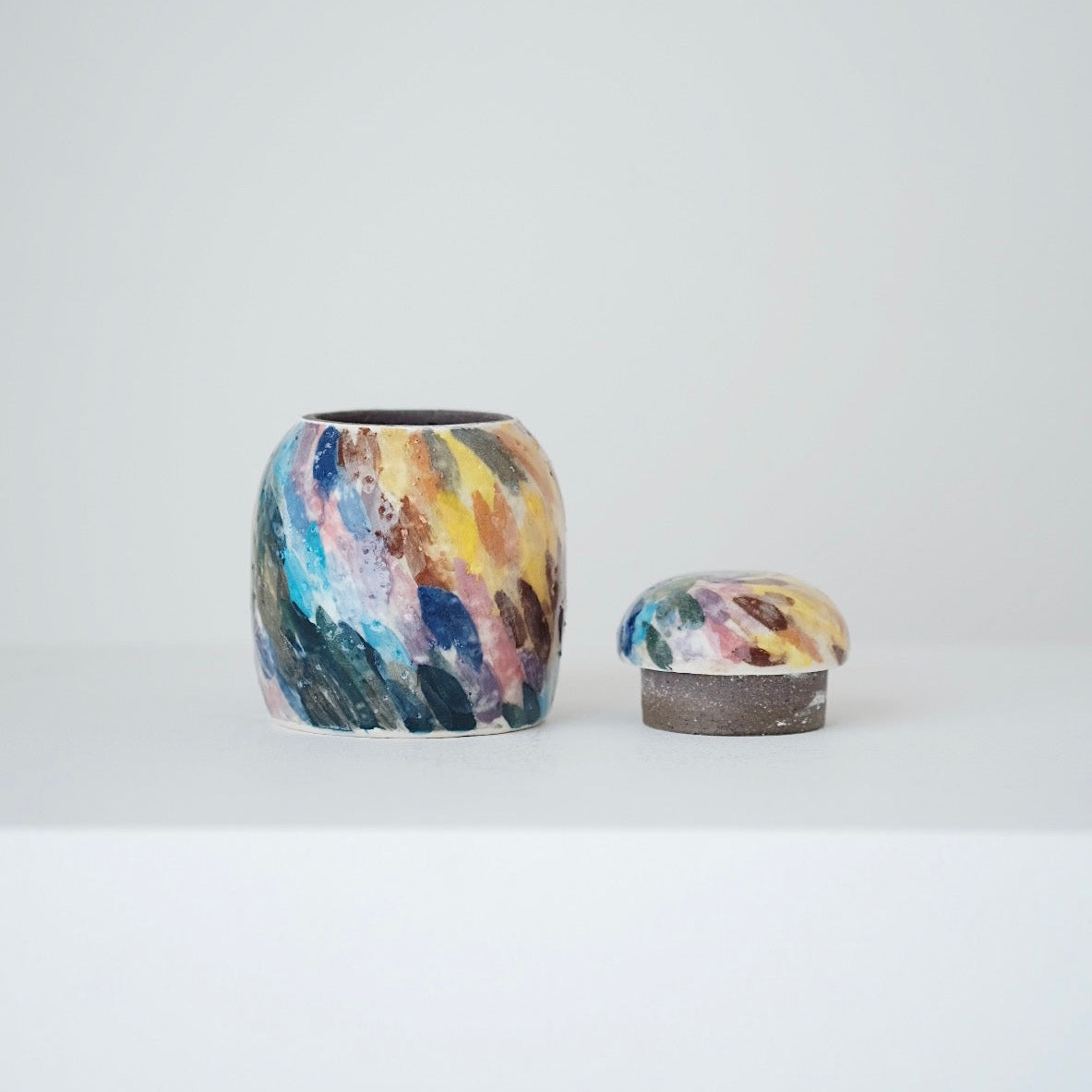 Lee works interchangeably with porcelain and buncheong, valuing the contrast between their characters—porcelain for its clarity and refinement, buncheong for its warmth and ease. His pieces emphasize gentle curves, balanced pouring, and a comfortable hand feel, often revealing subtle humor and individuality. Some works feature freely painted abstract motifs, used not for symbolism but as a playful exploration of color and surface. All of his pieces are made using clay sourced from Gimhae, grounding his work in the place where it is created.