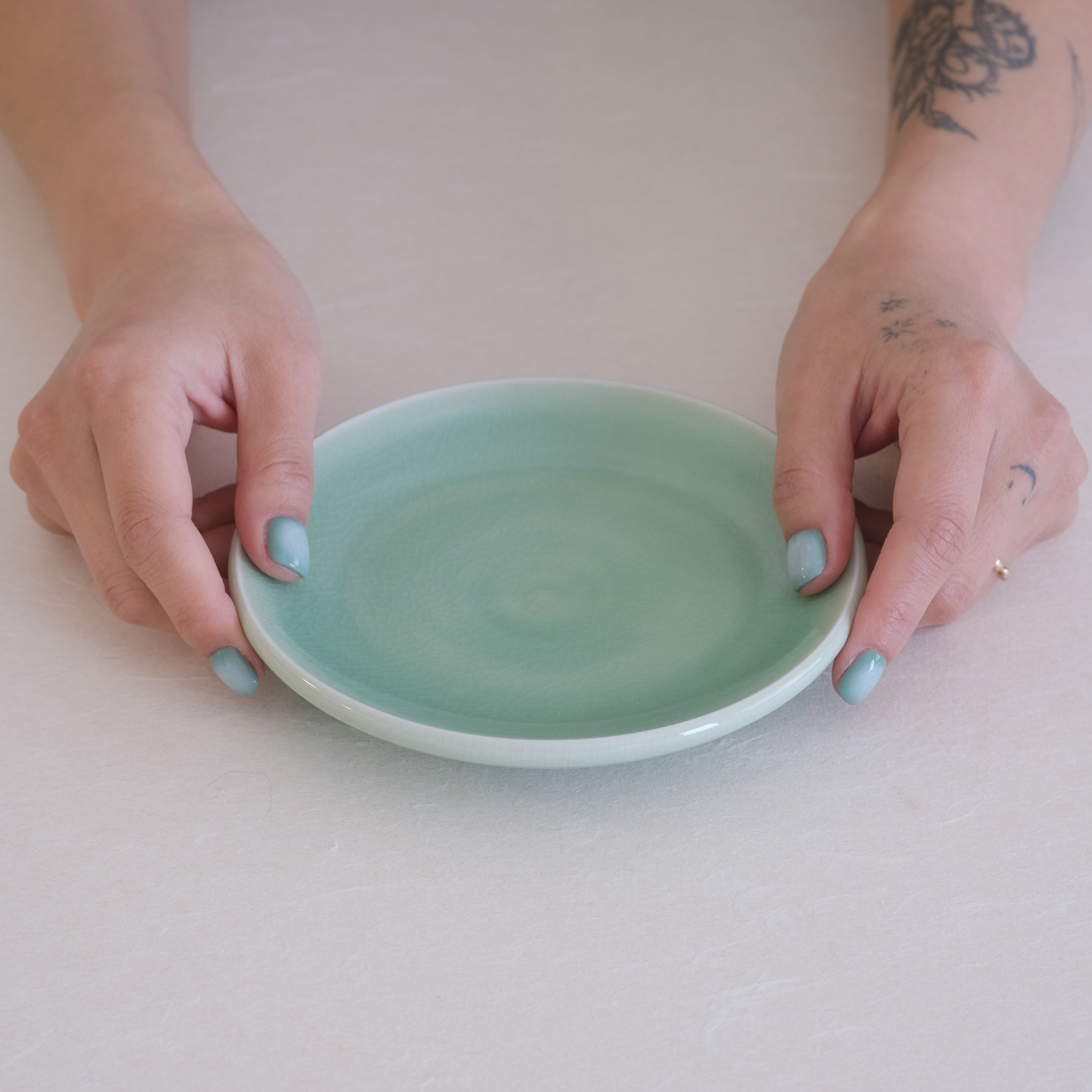 Our beautiful Chungja(Korean celadon ceramics) pieces are individually handmade by Jinho Choi.