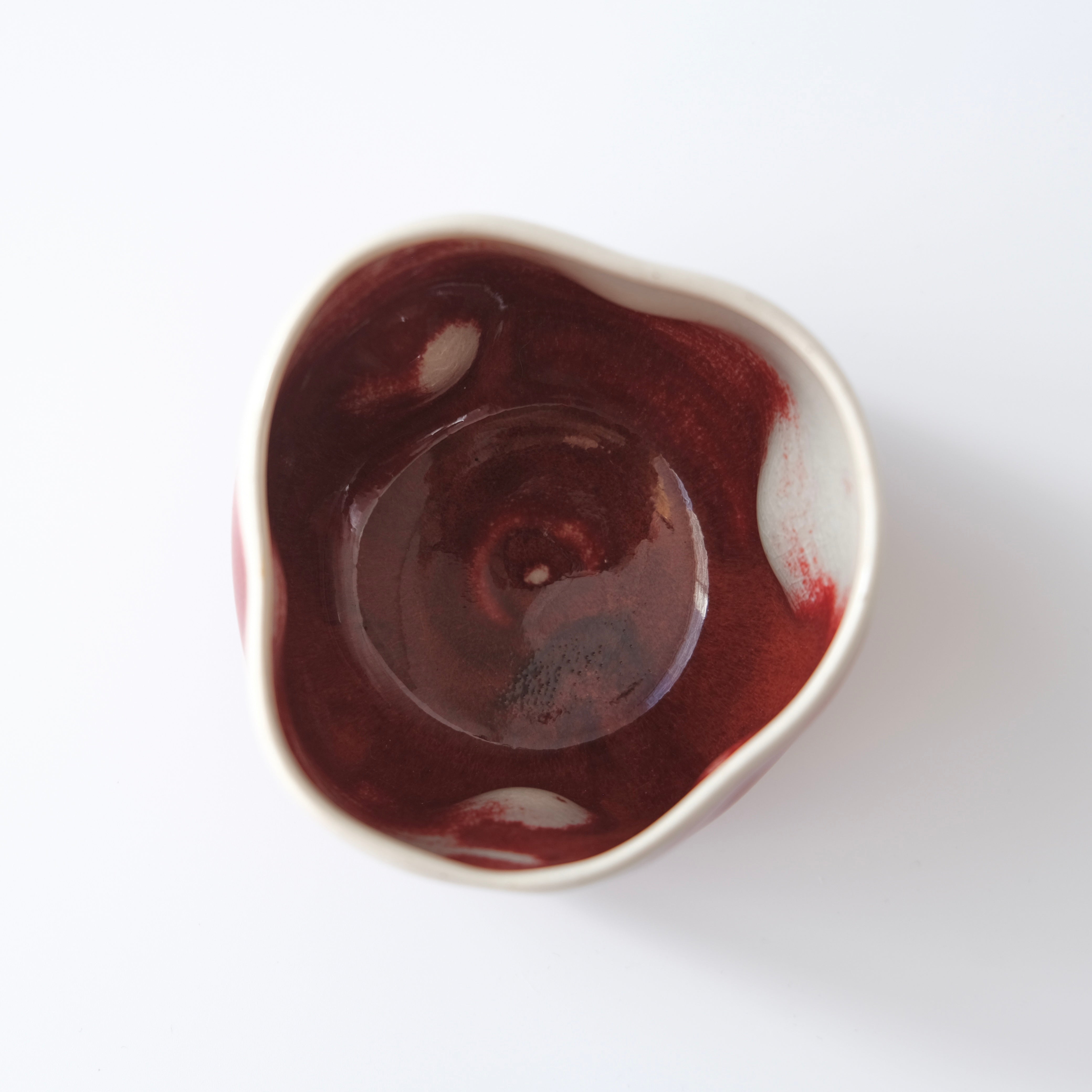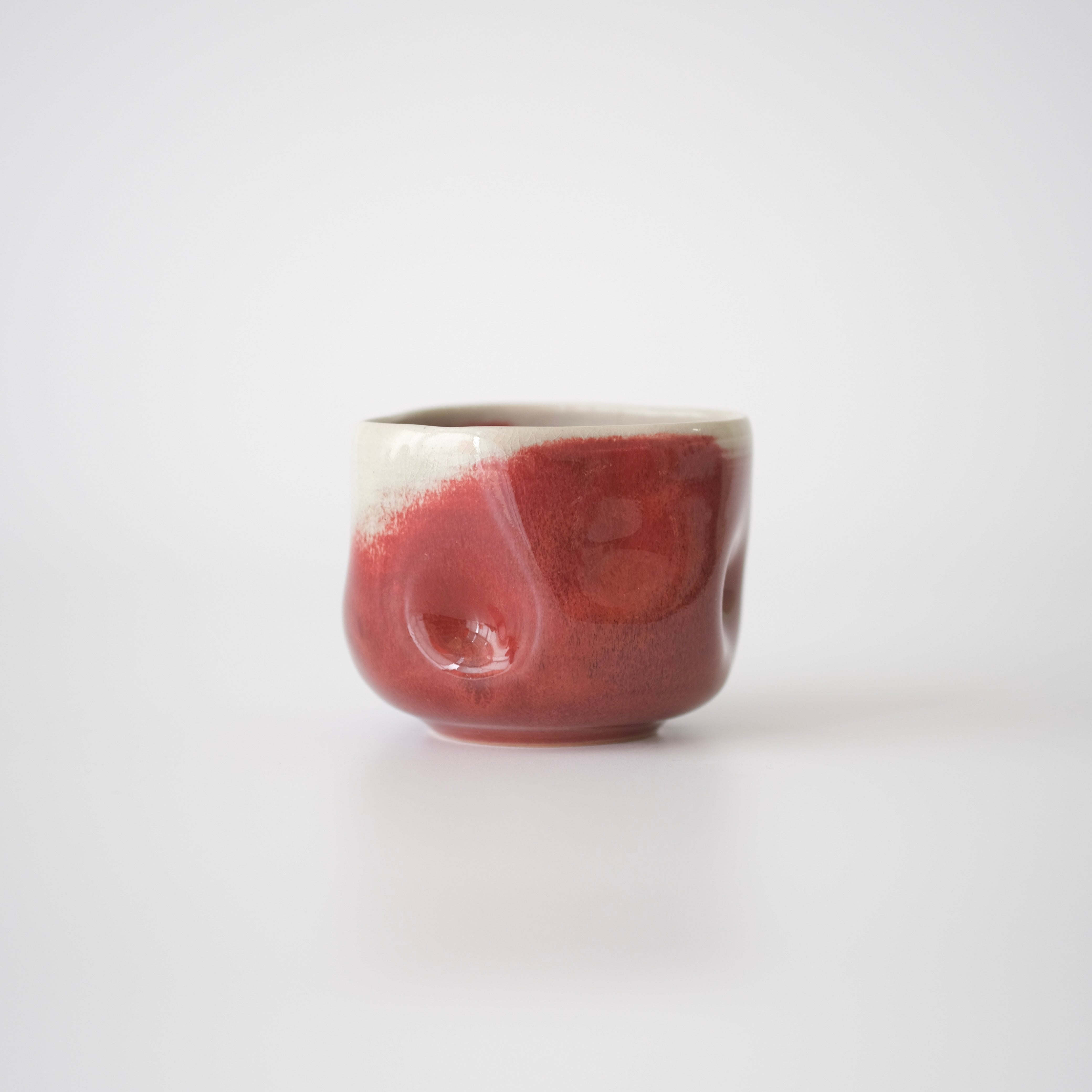 White and Gray Stoneware Clay, dipped in a cascading crimson gloss glaze.